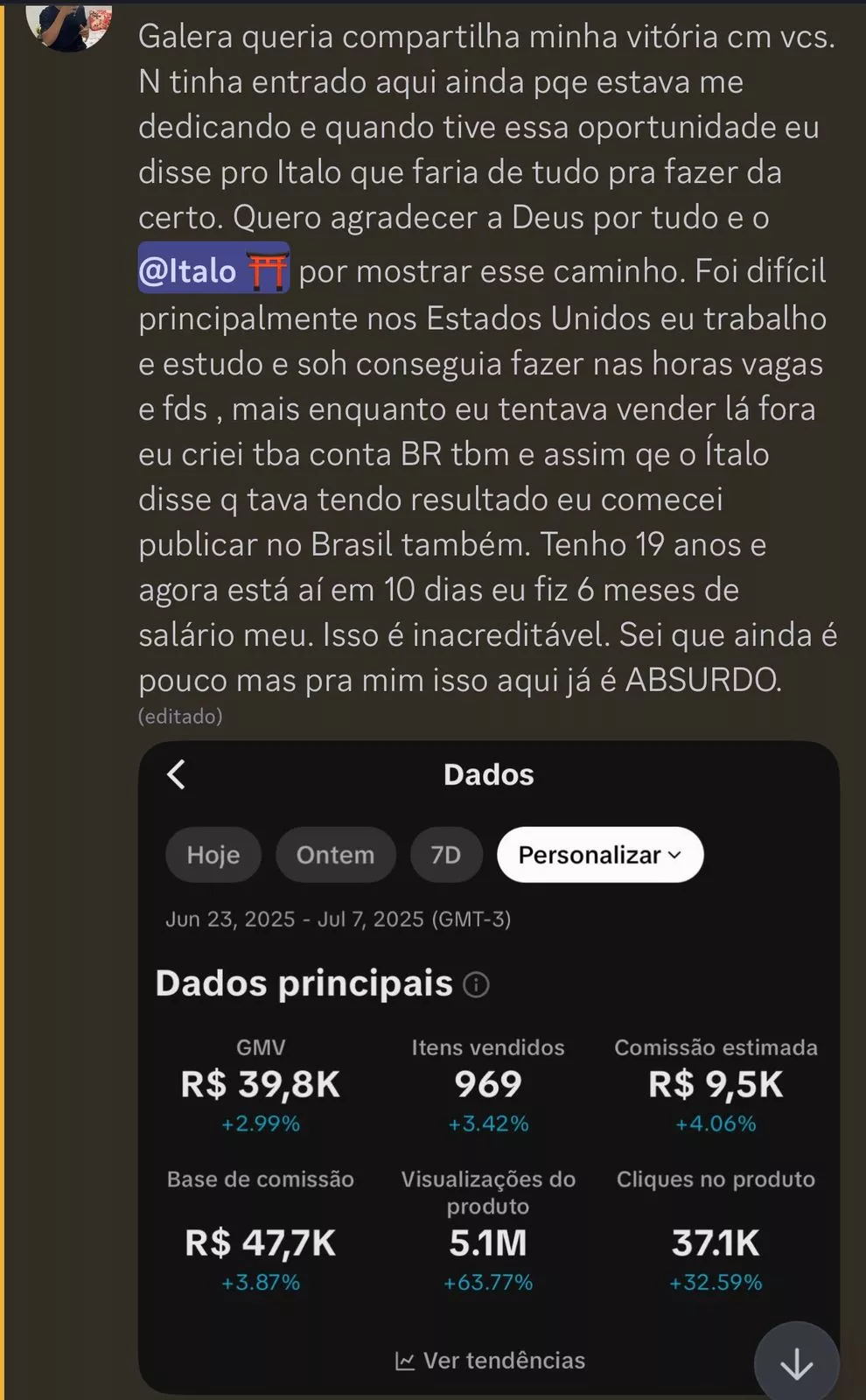 Mas Já passei por isso: postava vídeos vazios, ninguém assistia, as vendas demoravam a aparecer. Até que decidi tratar o TikTok como um método científico. Estudei mais de 5.000 vídeos que vendem diariamente, testei hipóteses até encontrar o que realmente funciona.